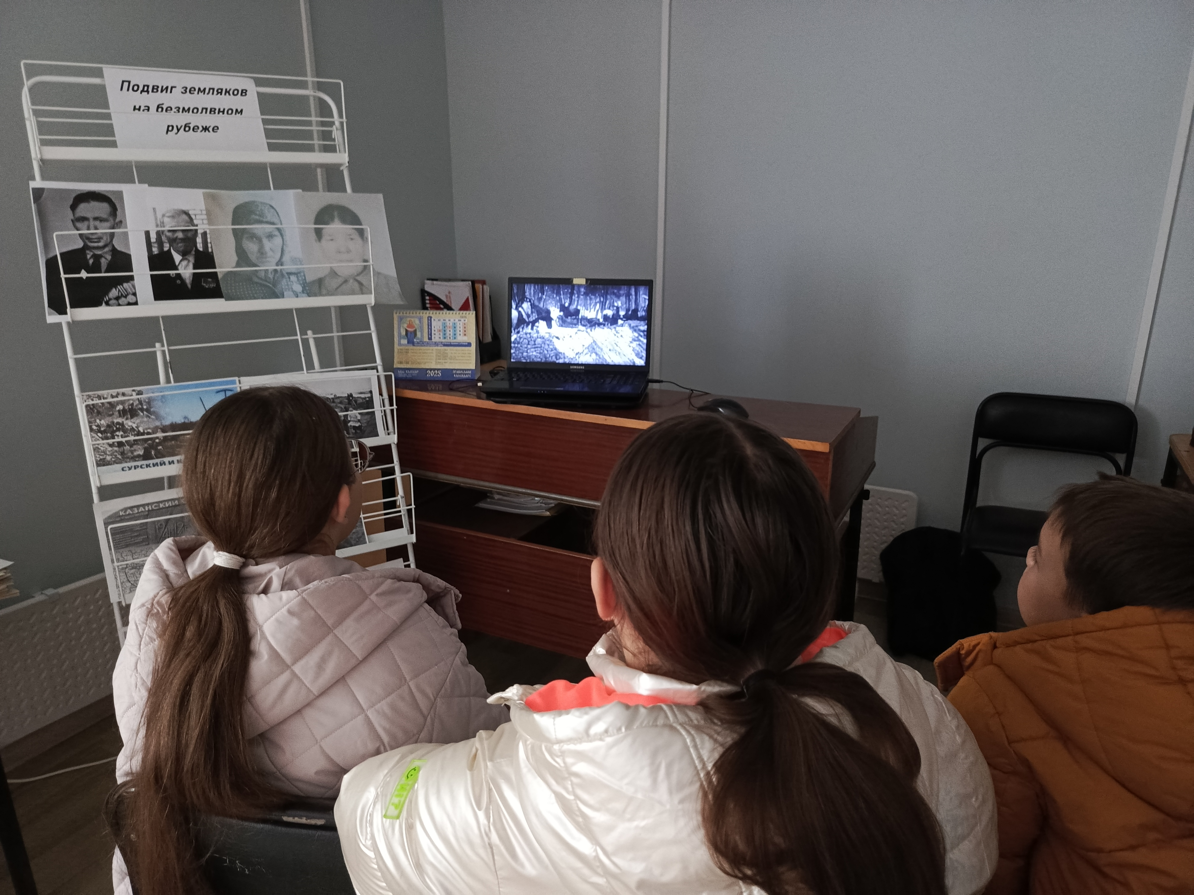 Далее посмотрели фильм «Сюда не наступит нога врага!», о строительстве Сурского и Казанского оборонительных рубежей во время Великой отечественной войны, о героизме тружеников военно-полевого строительства, о воспоминаниях строительства укрепительных сооружений.