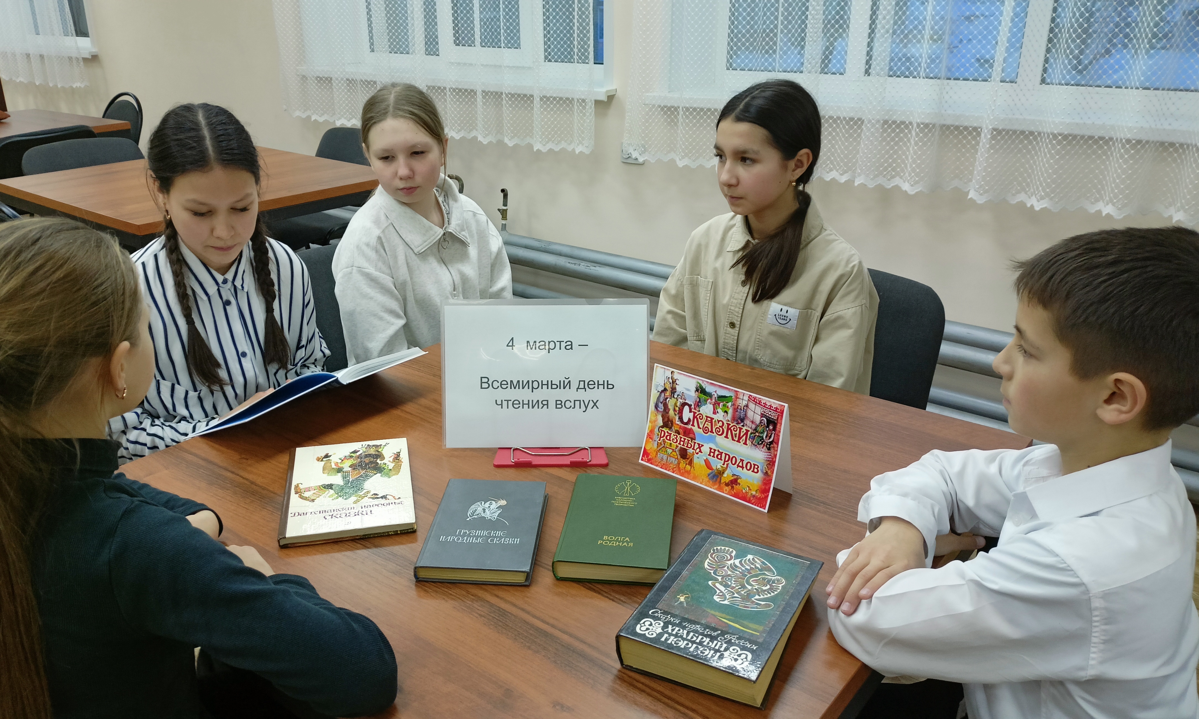Всемирный день чтения вслух ежегодно отмечают в первую среду марта, и проходит он по всей стране с 2010 года по инициативе общественной организации «Литературный мир». И к этой дате сегодня, 4 марта, в Вурманкасинской сельской библиотеке прошел час выразительного чтения «Читаем сказки народов России», который приурочен Году единства народов России. В ходе часа ребята погрузились в богатство культурного наследия нашей многонациональной страны. Через сказки они узнали о традициях, обычаях и мудрости разных народов, живущих бок о бок. Прочитаны следующие сказки: белорусская сказка «Легкий хлеб», нанайская сказка «Волшебная шапка», башкирская сказка «Батыры-близнецы», татарская сказка «Золотая птица» и в прочтении читательницы библиотеки, пенсионерки Маргариты Максимовны ребята послушали чувашскую сказку «Сказка о мачехе и падчерице».